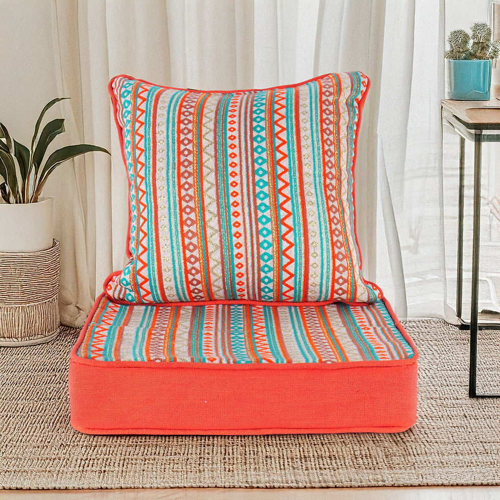 The Furnishers Floor Patio Seat Multi-Purpose Cushion Set Boho Orange